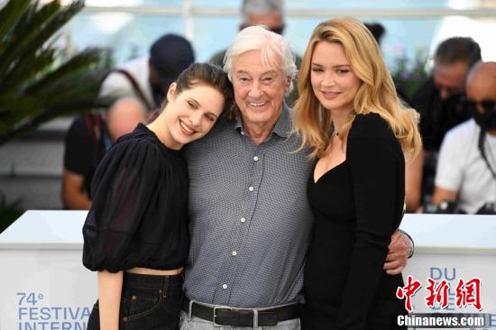 当地时间7月10日,第74届戛纳电影节主竞赛单元影片《圣母》主创人员集体亮相。该片由保罗·范霍文(中)执导, 维尔日妮·埃菲拉(右)、达芙妮·帕塔基亚等主演。影片取材于17世纪意大利的历史故事。 中新社记者 李洋 摄