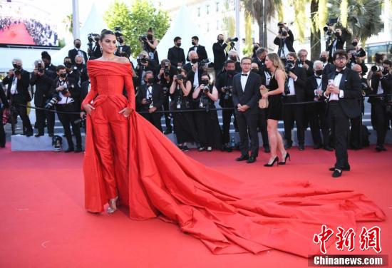 当地时间7月14日晚,西班牙超模玛塔·罗扎诺亮相第74届戛纳电影节影片《吾妻之话》首映红毯。 中新社记者 李洋 摄