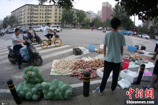 位于一处十字路口一角的蔬菜地摊,也忙碌着售卖各种瓜果蔬菜。据摊主介绍,原本他在附近的菜市场被淹,无奈只好临时在街头练摊。目前,菜市场工作人员正忙碌着清理积水和淤泥,待市场重新清理好之后,他们会重新搬回支摊营业。图片来源:ICphoto
