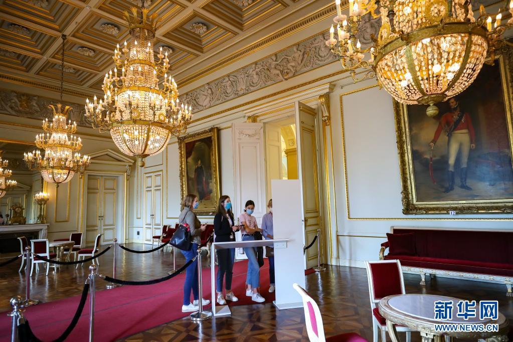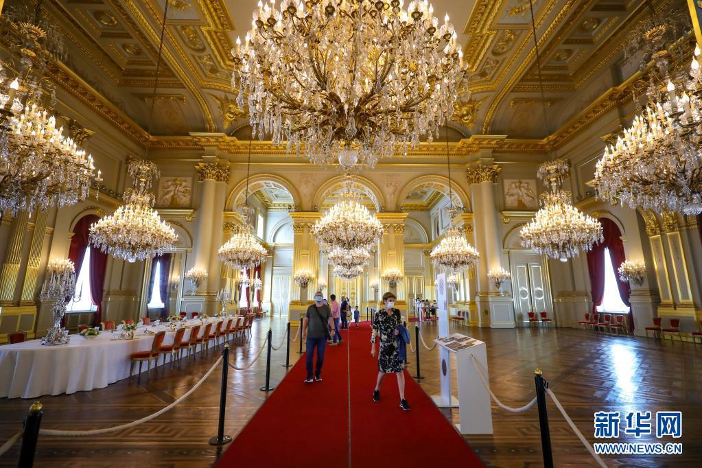 7月27日,游客在位于比利时布鲁塞尔的王宫参观。新华社记者 张铖 摄