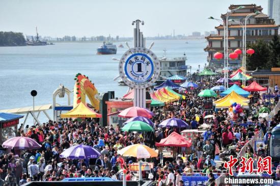 2017年10月,众多游客在辽宁游览中国边境城市丹东。国庆长假期间,游览鸭绿江、欣赏中朝两国风光,成为丹东边境旅游的一大亮点。 中新社记者 于海洋 摄