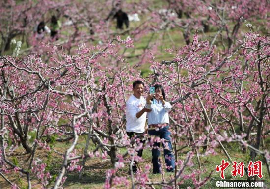 2020年5月,民众来到丹东宽甸河口景区赏花游玩,享受假日时光。 中新社记者 于海洋 摄