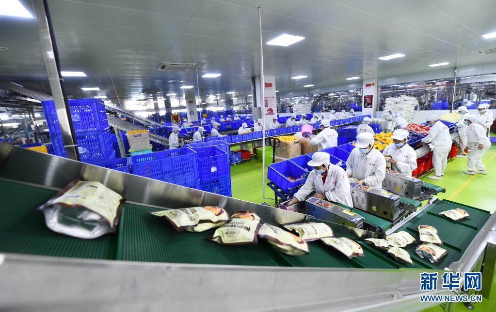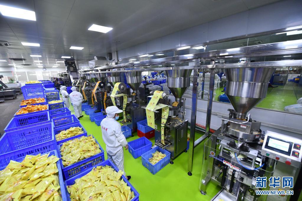 工人在广西善元食品有限公司螺蛳粉生产车间机械化生产线上作业(6月17日摄)。