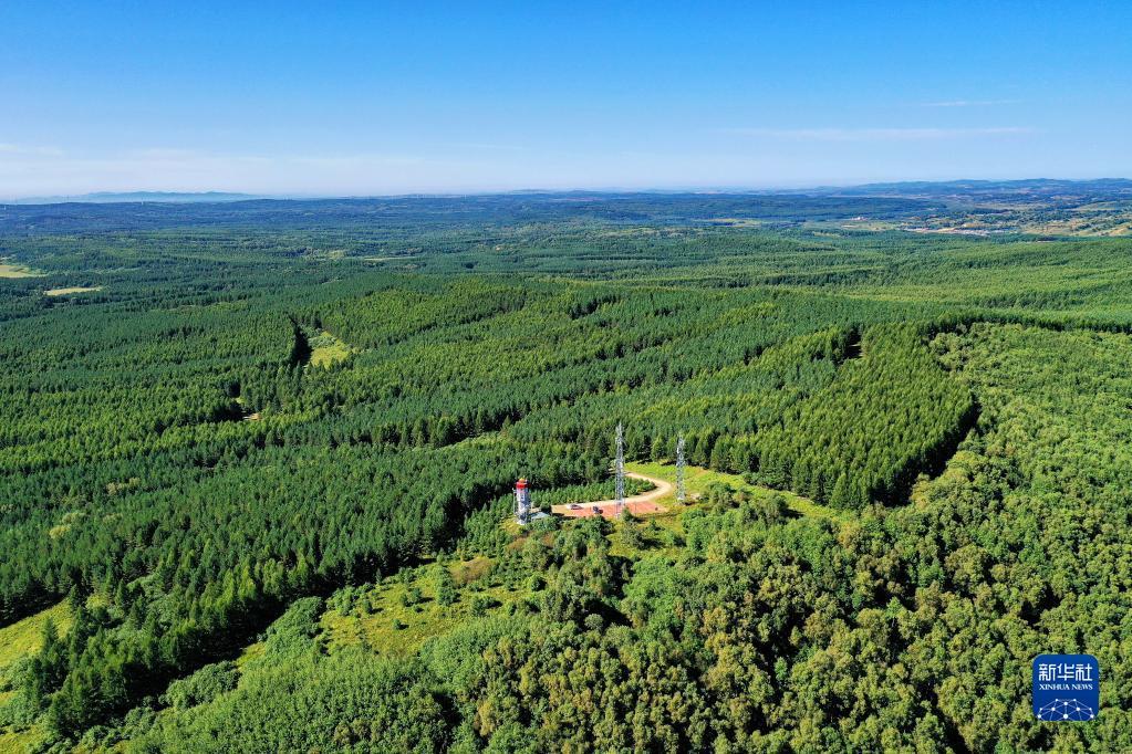 塞罕坝机械林场内的望海楼(8月23日摄,无人机照片)。