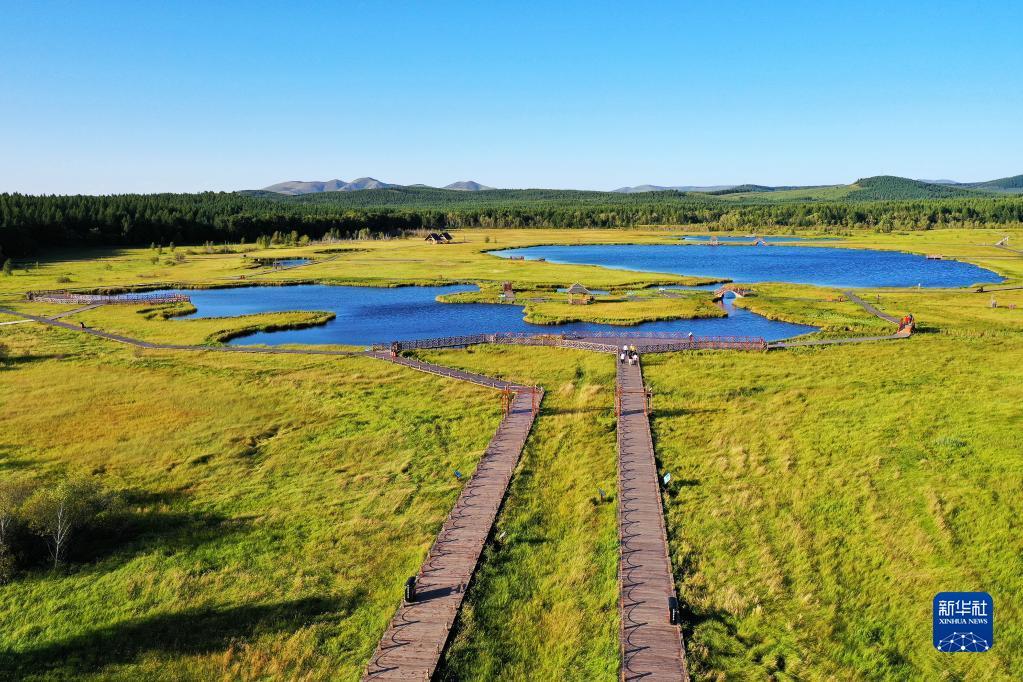 塞罕坝机械林场七星湖景区(8月22日摄,无人机照片)。