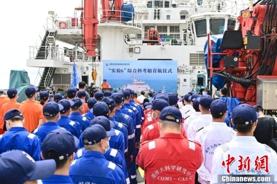 图为“实验6”综合科学考察船首航仪式。中新社记者 陈骥旻 摄