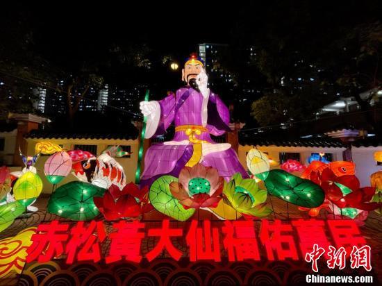 9月6日,为迎接中秋佳节及庆祝黄大仙宝诞,香港啬色园黄大仙祠将于中秋节前后举办花灯庙会等多项活动与民同乐。图为巨型黄大仙造型花灯。 中新社记者 李志华 摄