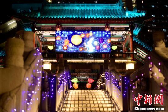 9月6日,为迎接中秋佳节及庆祝黄大仙宝诞,香港啬色园黄大仙祠将于中秋节前后举办花灯庙会等多项活动与民同乐。图为黄大仙祠内挂上月亮及玉兔的花灯。 中新社记者 李志华 摄