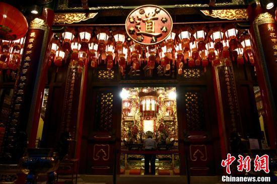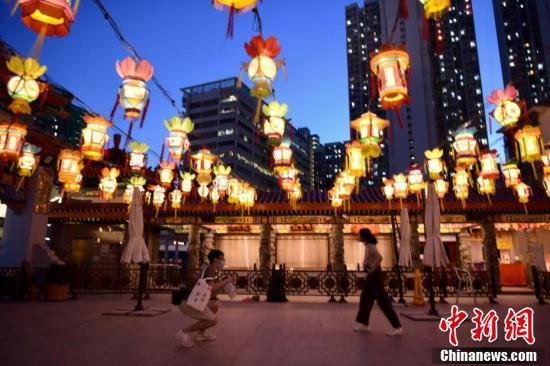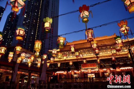 9月6日,为迎接中秋佳节及庆祝黄大仙宝诞,香港啬色园黄大仙祠将于中秋节前后举办花灯庙会等多项活动与民同乐。图为黄大仙祠挂满灯笼。 中新社记者 李志华 摄
