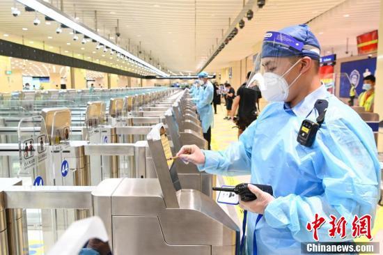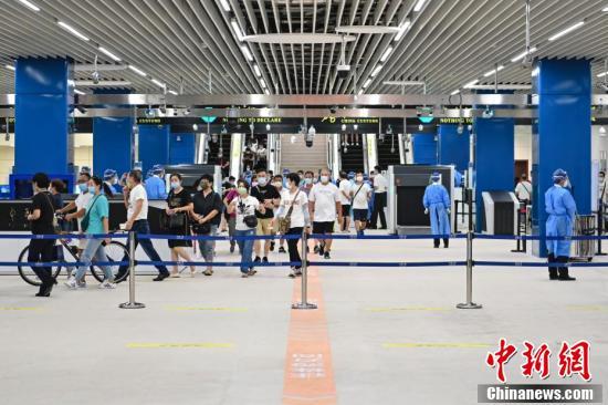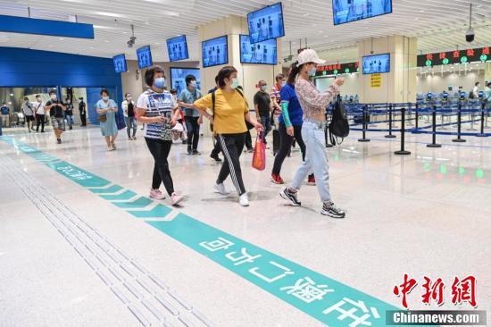 9月8日,广东省珠海市,入境旅客在青茂口岸通关。当日15时,粤澳新通道——青茂口岸正式开通运行。 中新社记者 陈骥旻 摄