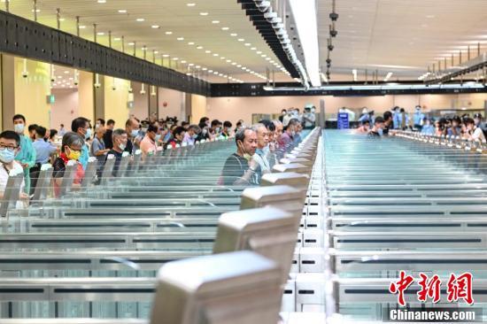 9月8日,广东省珠海市,青茂口岸内的旅客。当日15时,粤澳新通道——青茂口岸正式开通运行。 中新社记者 陈骥旻 摄