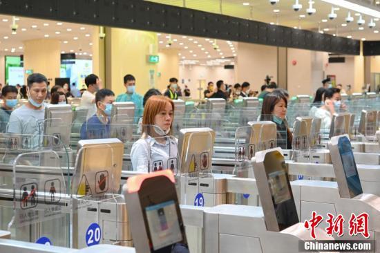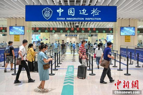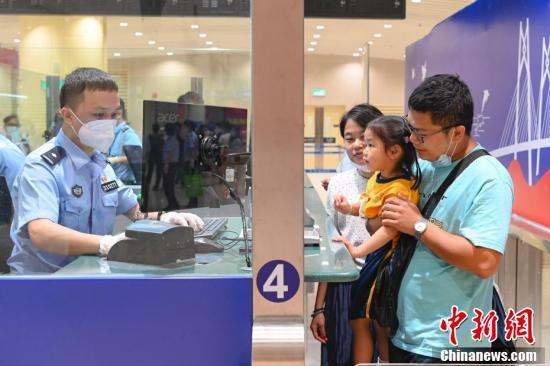 9月8日,广东省珠海市,出境旅客在青茂口岸通关。当日15时,粤澳新通道——青茂口岸正式开通运行。 中新社记者 陈骥旻 摄