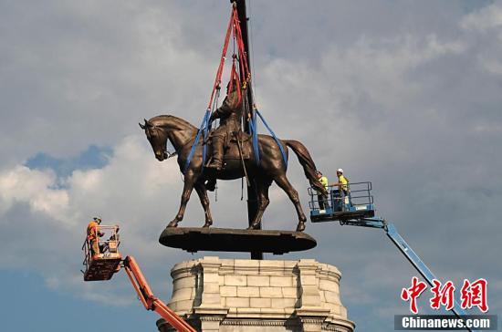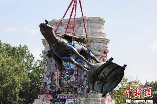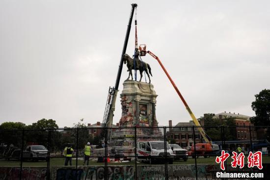 当地时间9月8日,美国佛吉尼亚州里士满,美国南方邦联将领罗伯特·李的雕像被拆除。据悉,这座雕像是里士满最大的罗伯特·李雕像,已有131年历史。在拆除现场,大量支持BLM的民众聚集围观,并爆发出阵阵欢呼。