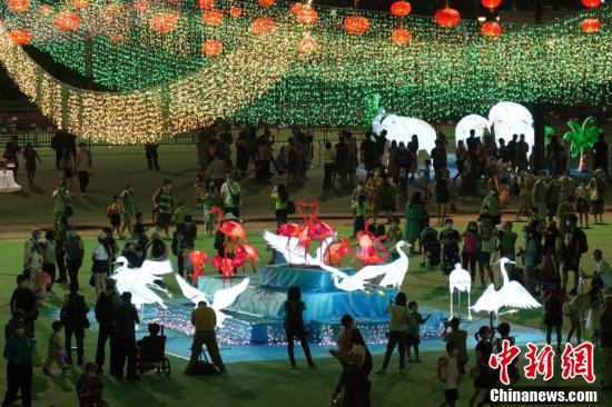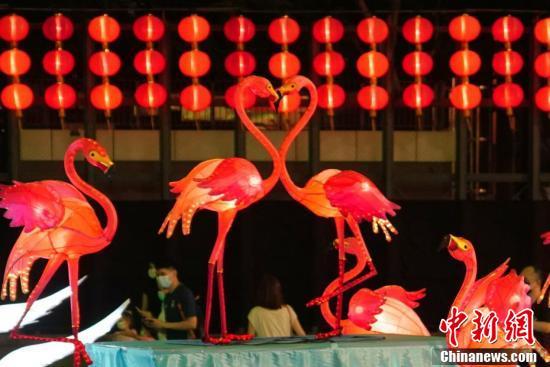9月18日晚,香港维多利亚公园的火烈鸟灯饰吸引市民参观。随着香港新冠疫情持续稳定,特区政府康乐及文化事务署(康文署)在维园等地恢复举办中秋灯会,在遵守防疫措施的前提下,让市民欢度中秋佳节。去年中秋节,受疫情影响,康文署取消了维园等地的中秋灯会。 中新社记者 张炜 摄
