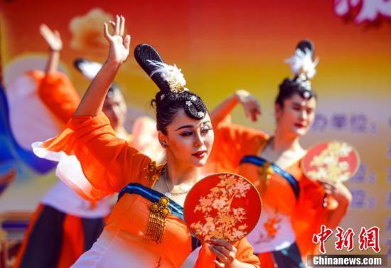 9月19日,新疆乌鲁木齐,文艺轻骑兵在游园会上表演。当日,在乌鲁木齐市水磨沟公园,一场“缘聚水磨·国潮中秋”游园会吸引不少汉服爱好者参与,市民与游客共同迎接中秋节的到来。 中新社记者 刘新 摄