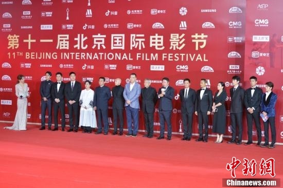 9月20日晚,北京,电影《惊天救援》剧组亮相第十一届北京国际电影节开幕红毯。当晚,第十一届北京国际电影节在北京开幕。 中新社记者 田雨昊 摄