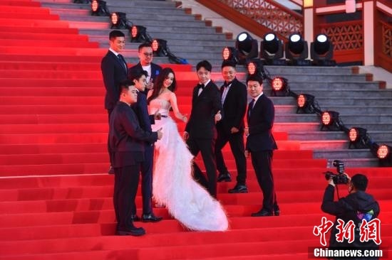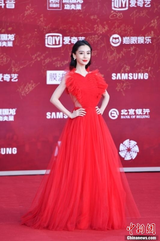 9月20日晚,北京,杨颖亮相第十一届北京国际电影节开幕红毯。 中新社记者 田雨昊 摄