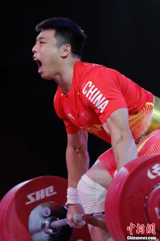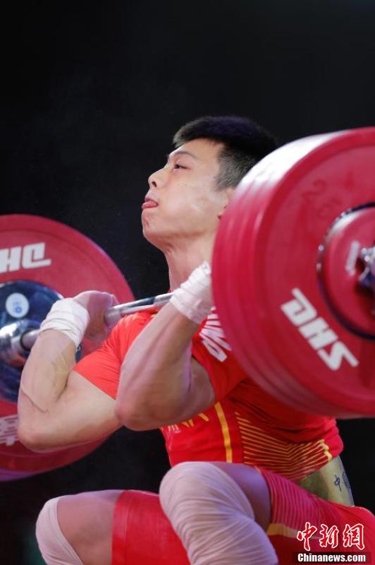 9月21日,第十四届全运会举重男子67公斤级决赛在陕西渭南举行。东京奥运会冠军谌利军以抓举152公斤、挺举180公斤、总成绩332公斤获得金牌。图为谌利军在比赛中。 中新社记者 蒋启明 摄