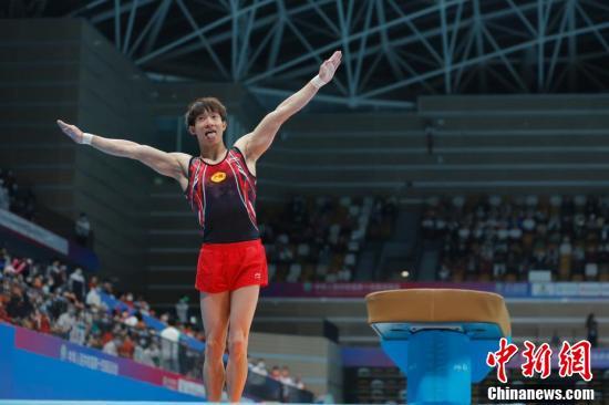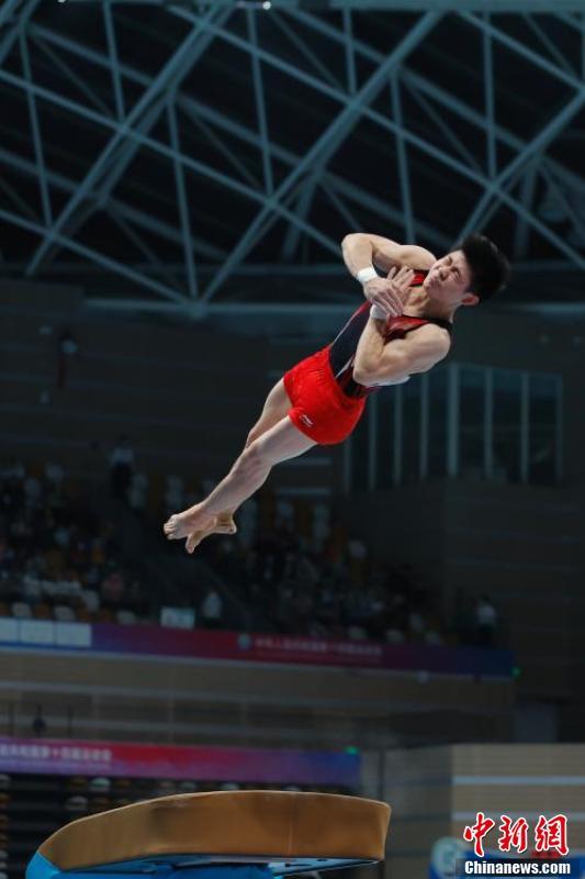 9月26日,第十四届全运会男子跳马决赛在陕西西安举行。贵州队选手陈治龙获得铜牌。 中新社记者 蒋启明 摄