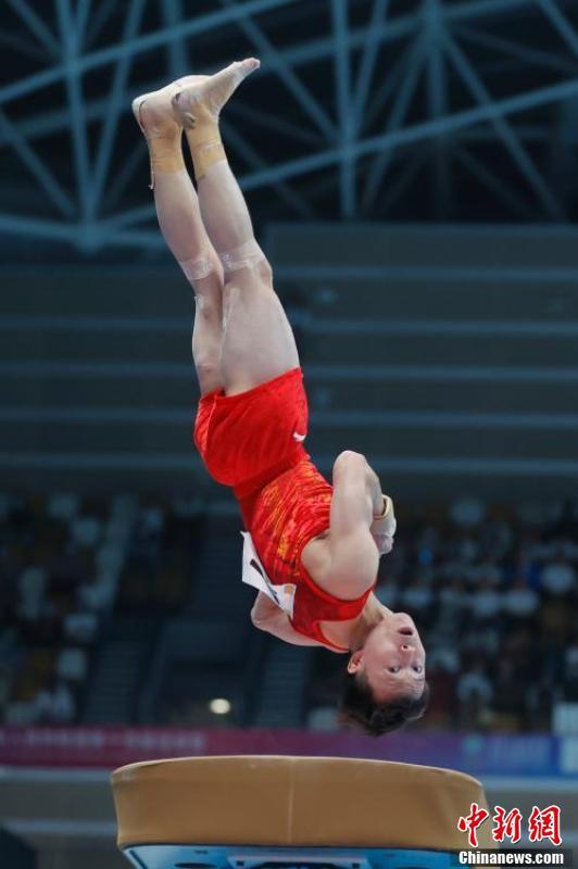 9月26日,第十四届全运会男子跳马决赛在陕西西安举行。广西队选手黄明淇获得冠军。 中新社记者 蒋启明 摄