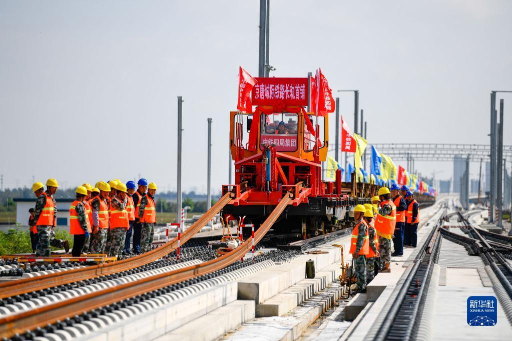 当日,中铁四局工作人员驾驶铺轨机在京(北京)唐(唐山)城际铁路施工现场开始进行长轨铺设,标志着京唐城际铁路进入铺轨阶段,为下一步静态验收及京唐城际铁路按期开通奠定坚实基础。京唐城际铁路起点位于北京市通州区的城市副中心站,终点位于河北省唐山市唐山站,线路长约148.74公里,最高设计时速为350公里。