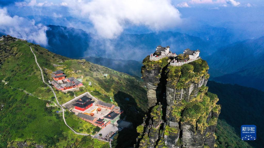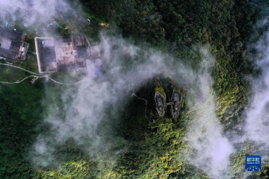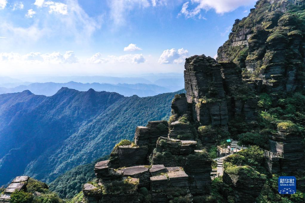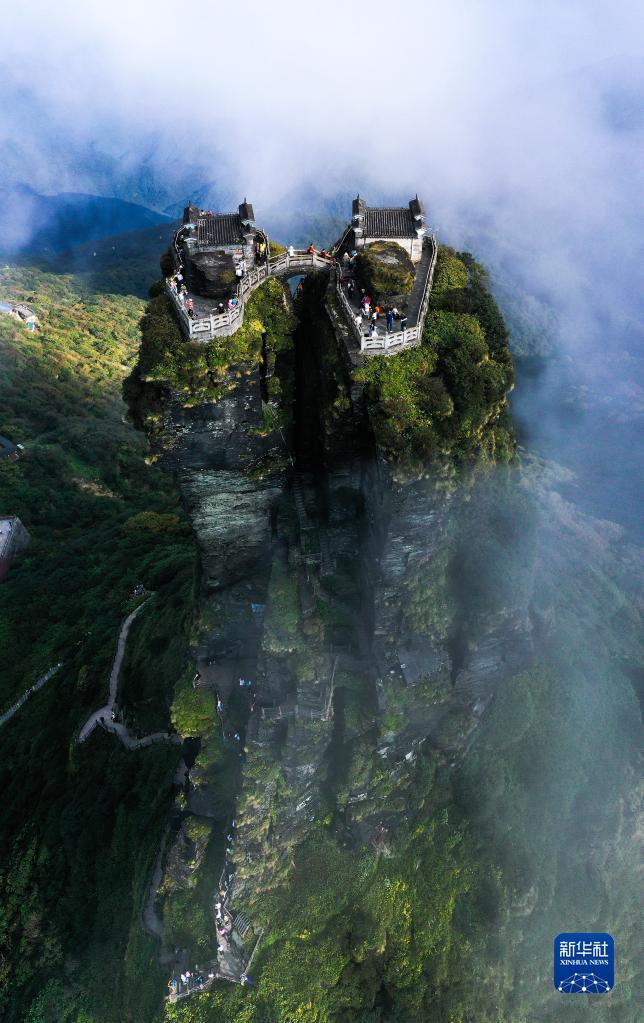 9月27日,游客在贵州省铜仁市梵净山景区旅游观光(无人机照片)。