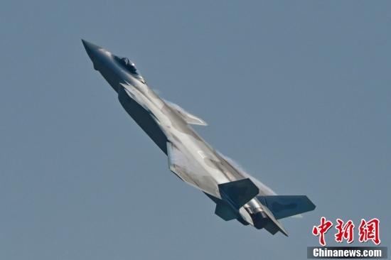 9月29日,广东省珠海市,安装了国产发动机的歼-20战机在第十三届中国航展上进行飞行展示。 中新社记者 陈骥旻 摄