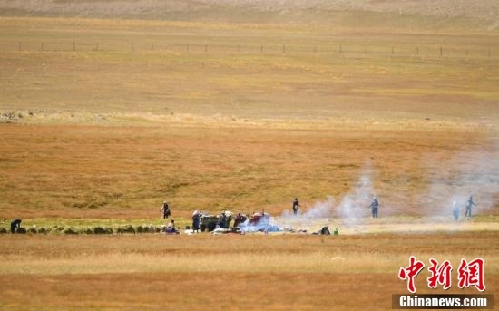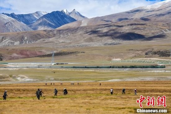 图为9月29日,西藏自治区拉萨市当雄县羊八井镇牧民在收割牧草。 中新社记者 贡嘎来松 摄
