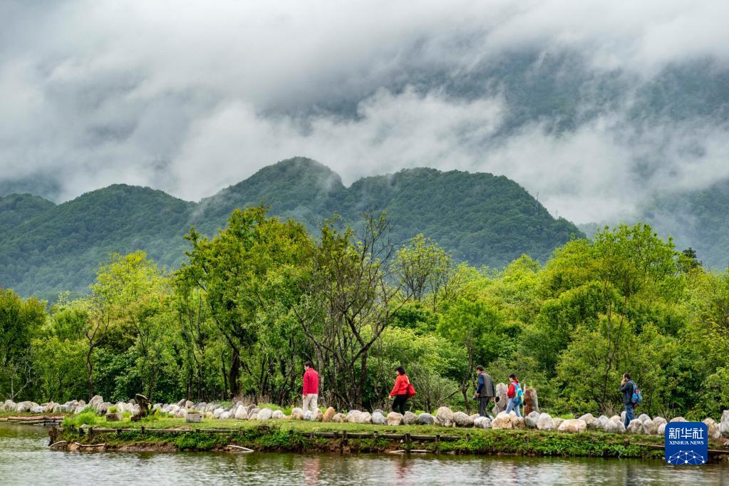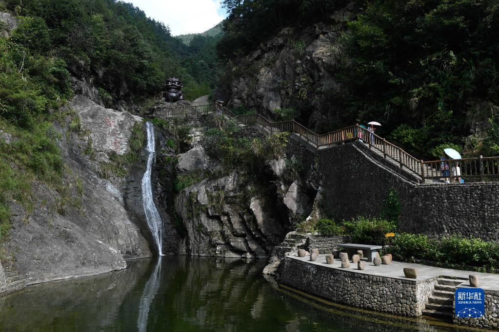 2018年8月9日,游客在钱江源国家公园体制试点区的开化县齐溪镇龙门村一处景点游览。