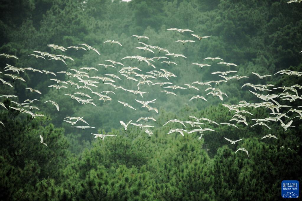 在南山国家公园体制试点区,鹭群在天空中飞舞(2018年9月24日摄)。