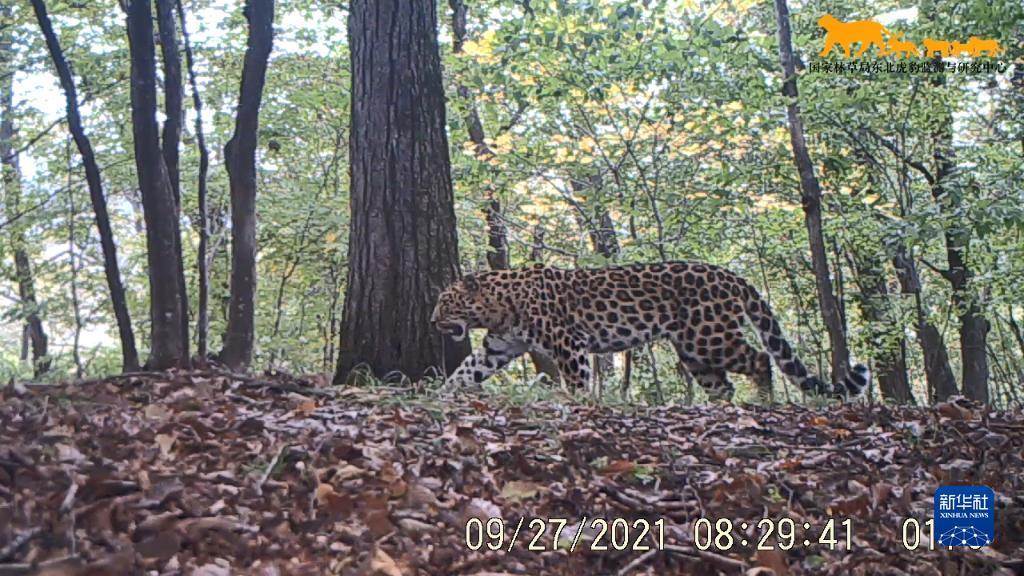 这是架设在东北虎豹国家公园体制试点区的远红外相机于2021年9月27日拍摄到的野生东北豹影像(视频截图)。