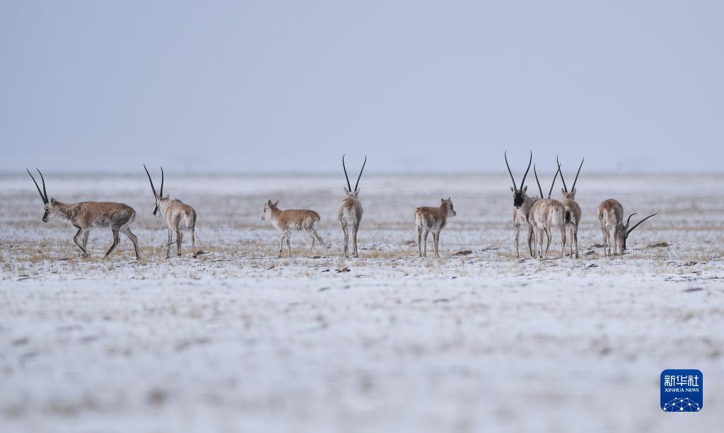 2021年4月20日,藏羚羊在三江源可可西里地区活动。