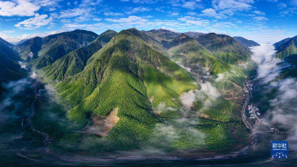俯瞰大熊猫国家公园四川片区大邑区域(2021年8月25日摄,无人机照片)。