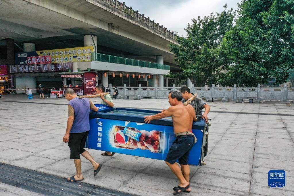 10月6日,群众在重庆磁器口古镇转移物资(无人机照片)。