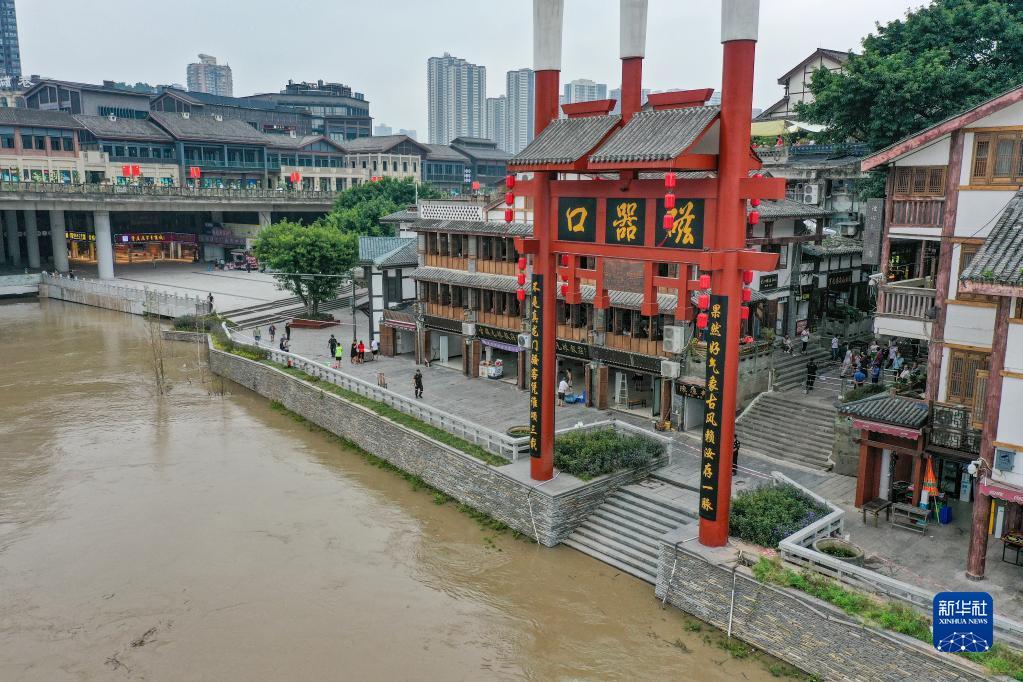 10月6日,嘉陵江重庆磁器口段洪水已开始倒灌进磁器口古镇旁的小河沟。