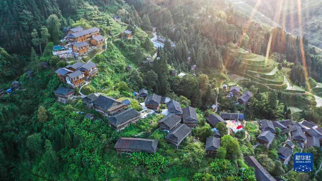 这是10月6日拍摄的贵州省榕江县计划乡加宜村的苗寨与民宿(无人机照片)。