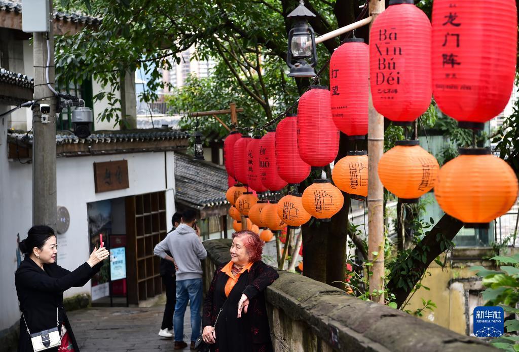 10月17日 ,游客在山城巷游览、留影。新华社记者 王全超 摄