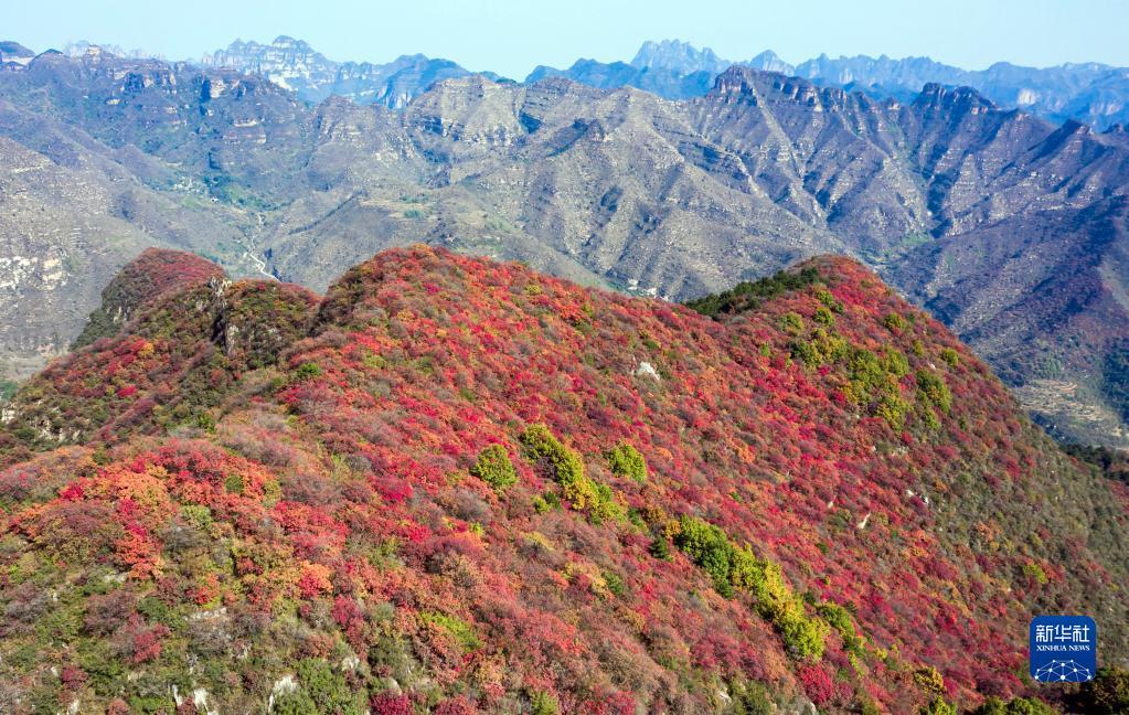 近日,河北省武安市山区的黄栌树进入观赏期,漫山的黄栌树有的泛红、有的泛黄,美如画卷,吸引游客前来观赏游玩。