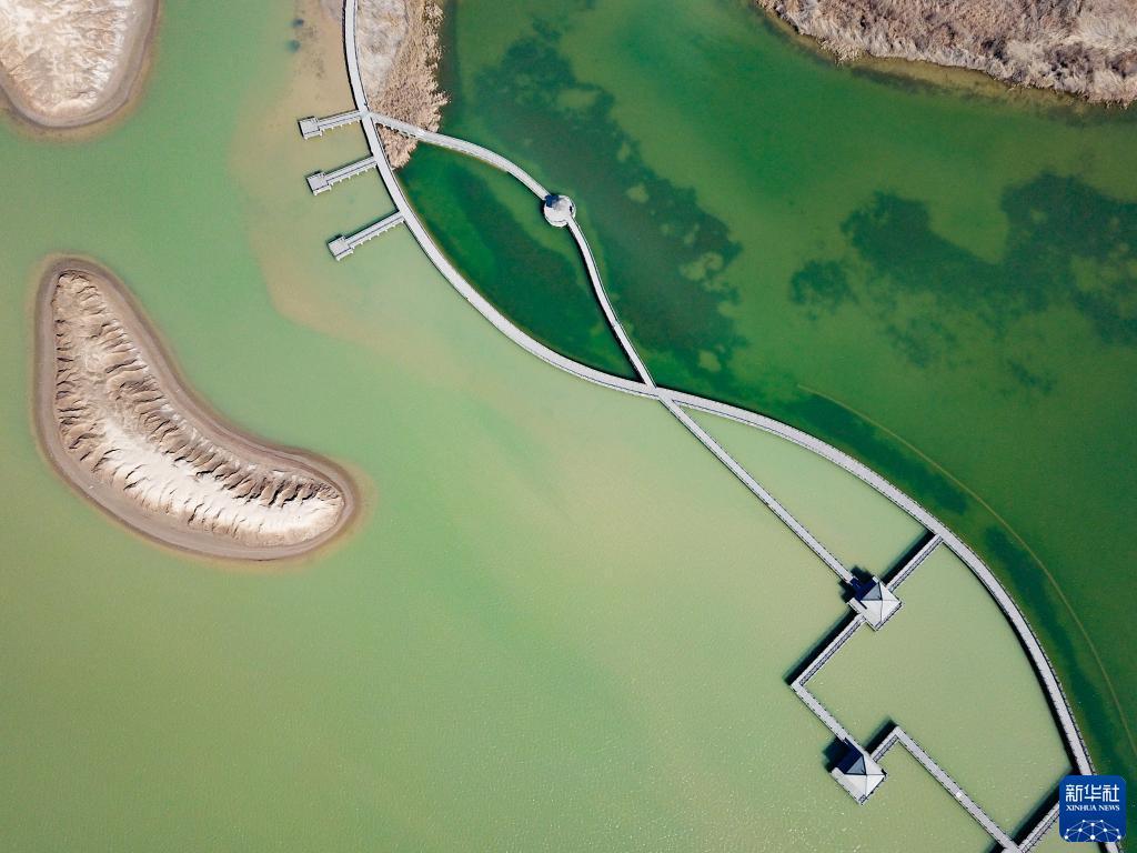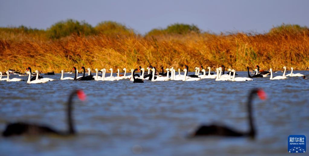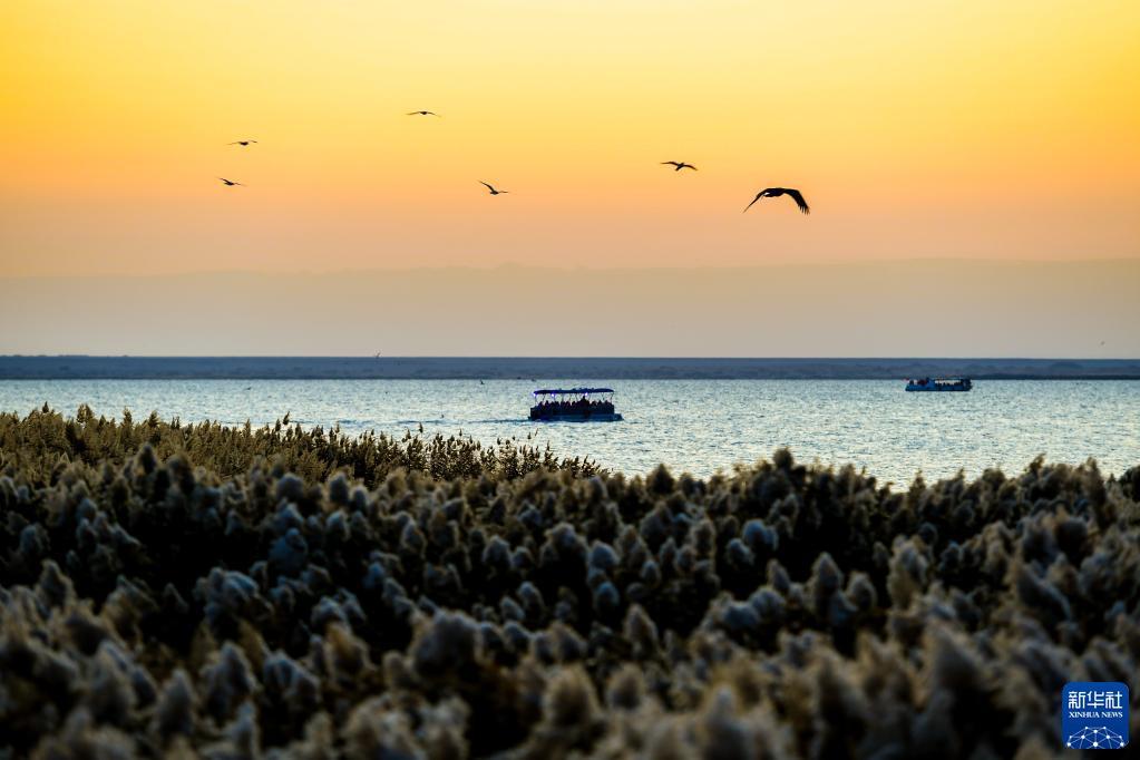 这是在内蒙古拍摄的居延海风光(2019年10月17日摄)。黄河水资源管理与生态调度使东居延海连续16年不干涸。