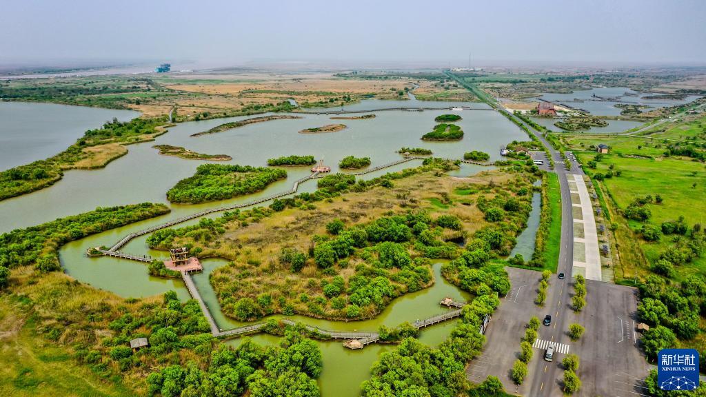 这是山东黄河三角洲国家级自然保护区景色(5月13日摄,无人机照片)。