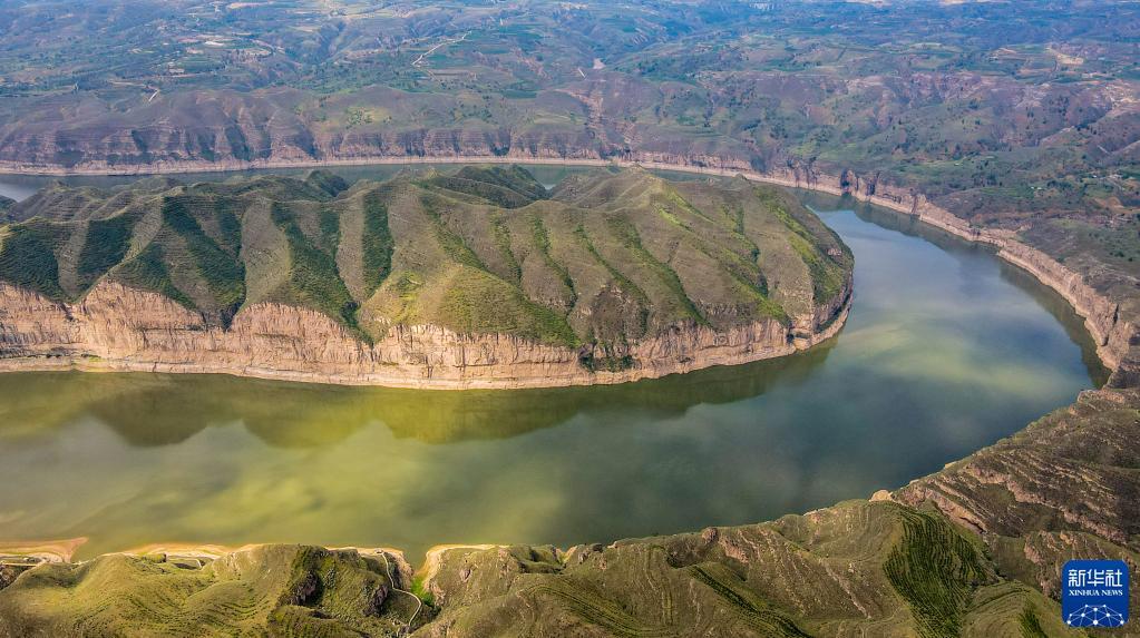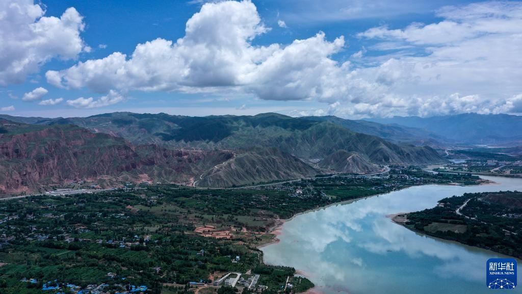位于青海省海东市化隆回族自治县境内的黄河及沿岸景观(2020年7月10日摄,无人机照片)。
