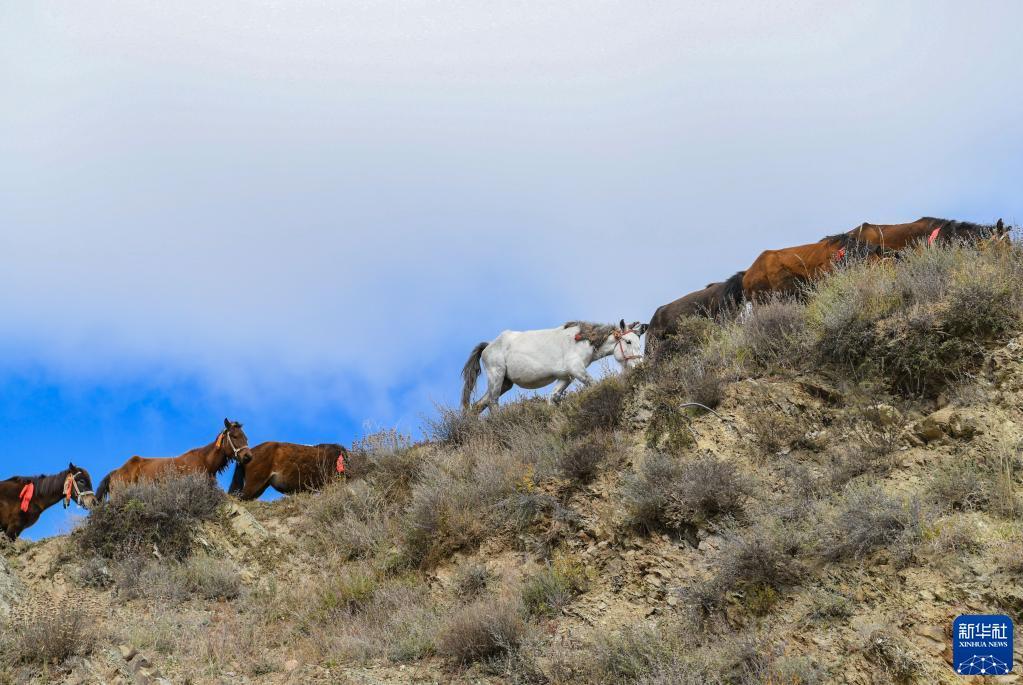 在甘孜县来马镇格通村,马群前往草场(10月25日摄)。