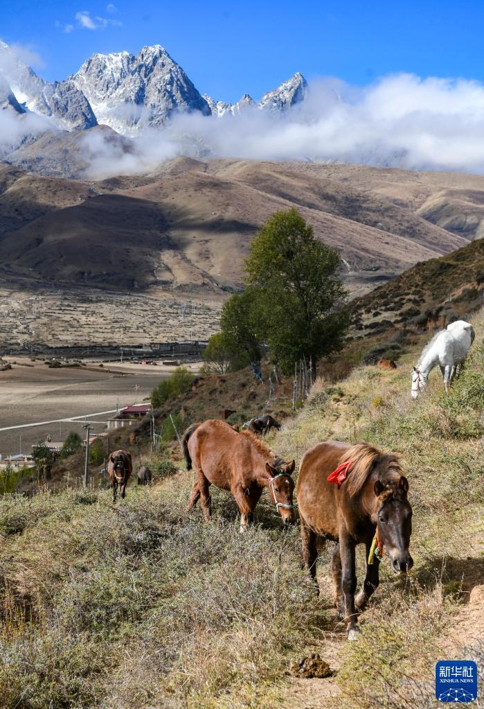 在甘孜县来马镇格通村拍摄的马群(10月25日摄)。