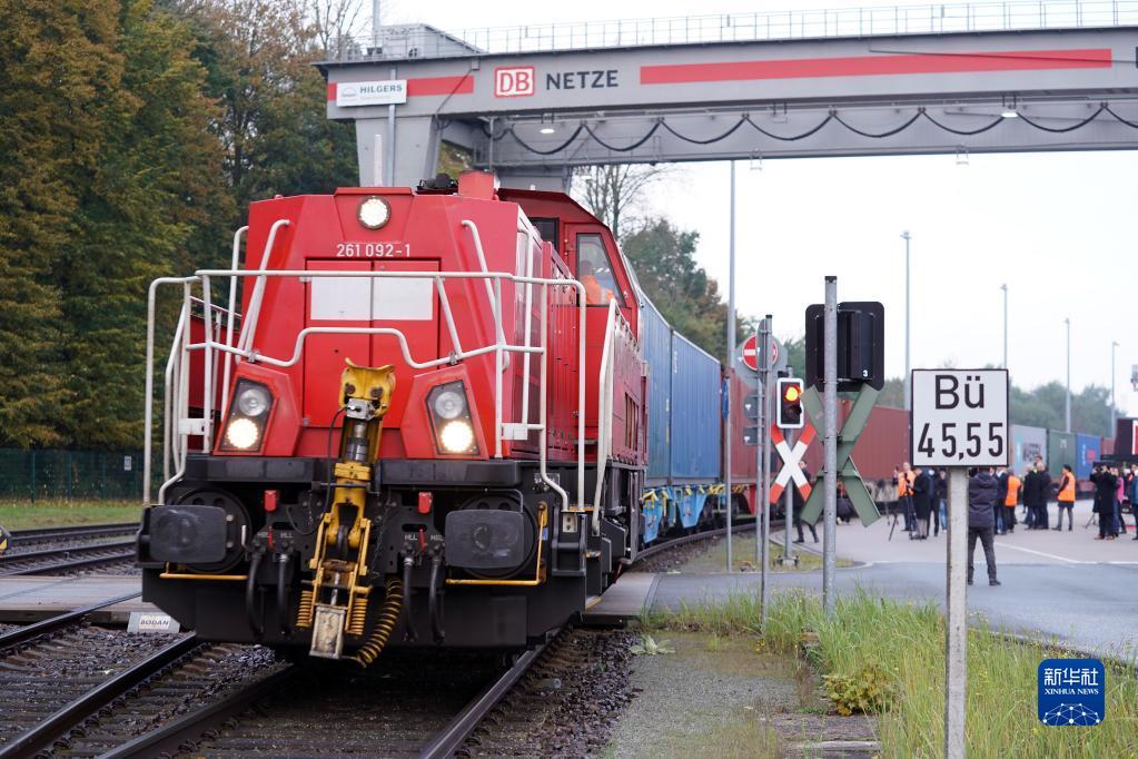 10月26日,首列“上海号”中欧班列驶入德国汉堡的货场。