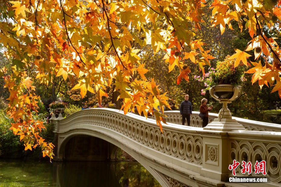 当地时间11月4日,美国纽约秋意正浓景色怡人,民众在中央公园欣赏秋色。 中新社记者 廖攀 摄