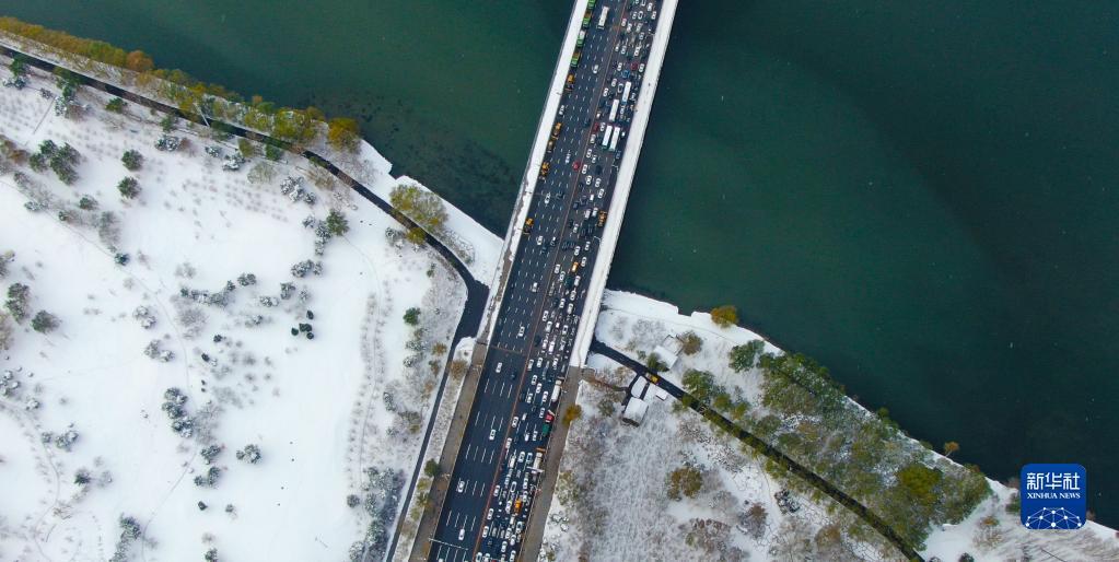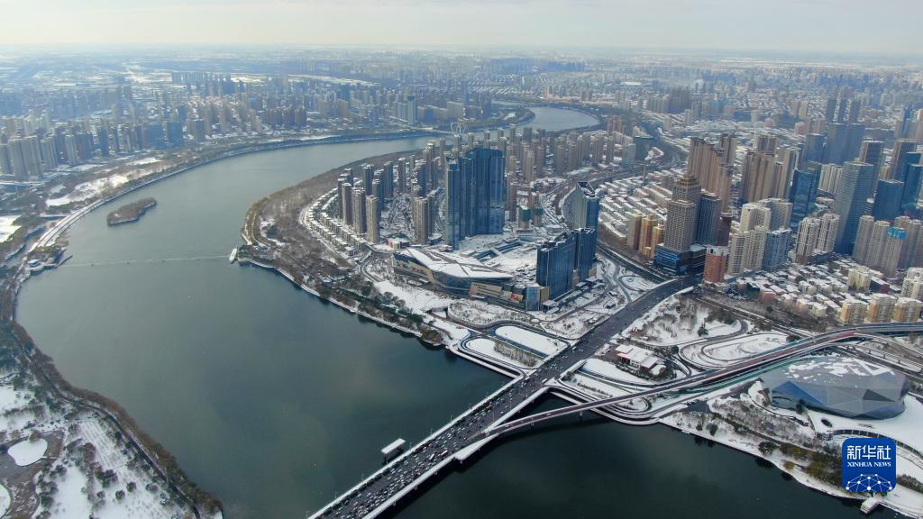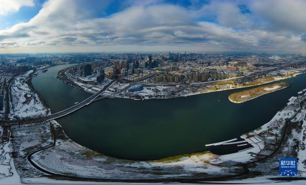 11月11日拍摄的沈阳市浑河两岸雪景(无人机照片)。