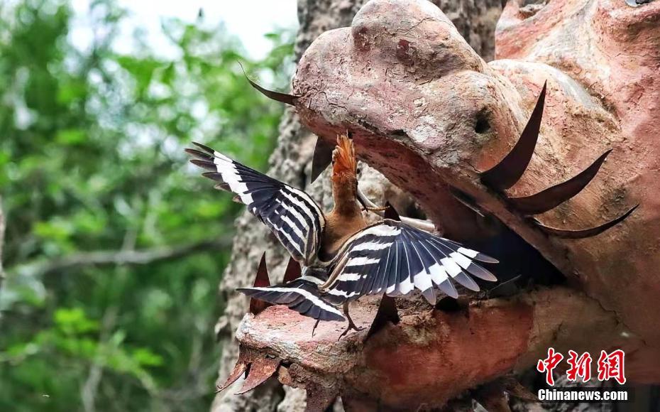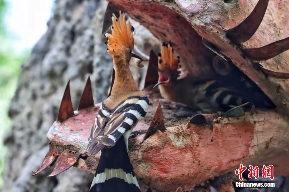 "星点花冠道士衣,紫阳宫女化身飞。"近日,青海省摄影家利用近一个月的时间在青海省海东市拍摄记录到稀有物种戴胜鸟哺育幼鸟生长的画面,实属珍贵。戴胜鸟常栖息于山地、森林、平原、河谷和农田,主要以虫类为食,为益鸟,是以色列国鸟,列入《世界自然保护联盟濒危物种红色名录》《中国国家保护的有益的或者有重要经济、科学研究价值的陆生野生动物名录》。其外表艳丽,呈斑马纹羽毛,头顶羽冠,嘴巴细长而尖,非常漂亮。 记者孙睿 莫存学 摄