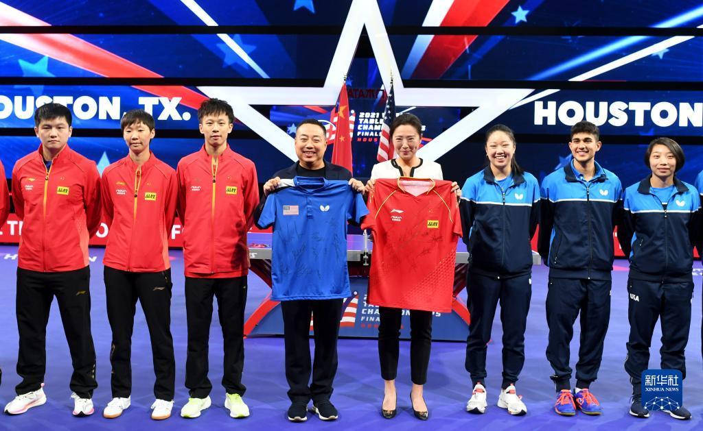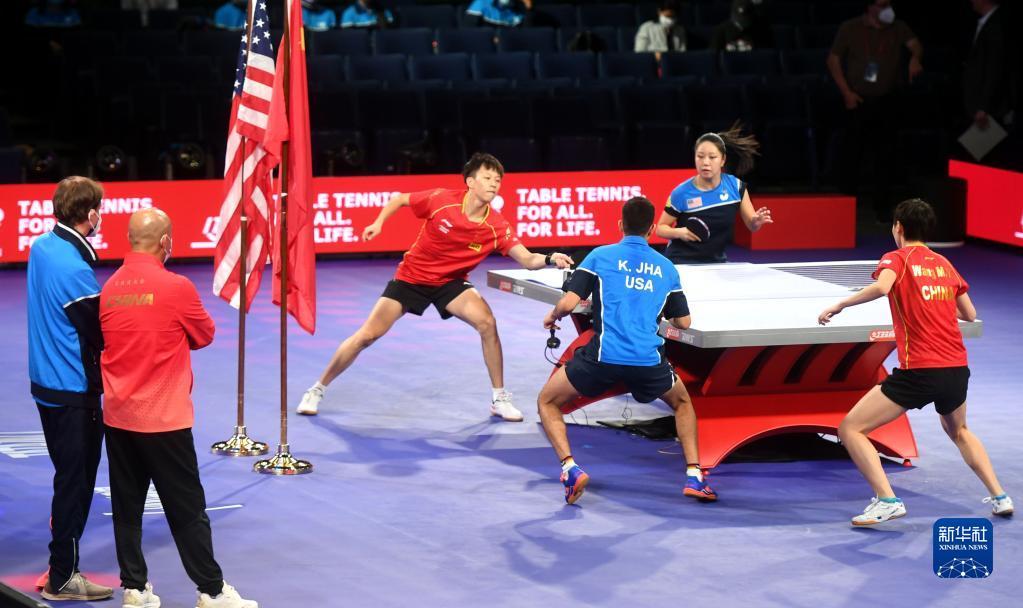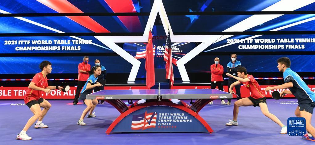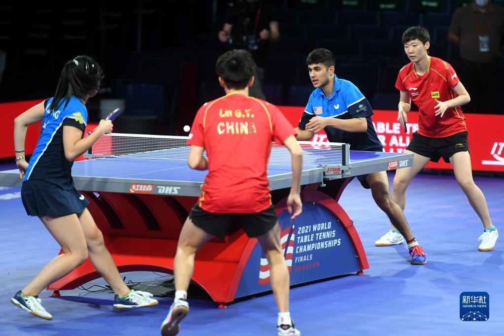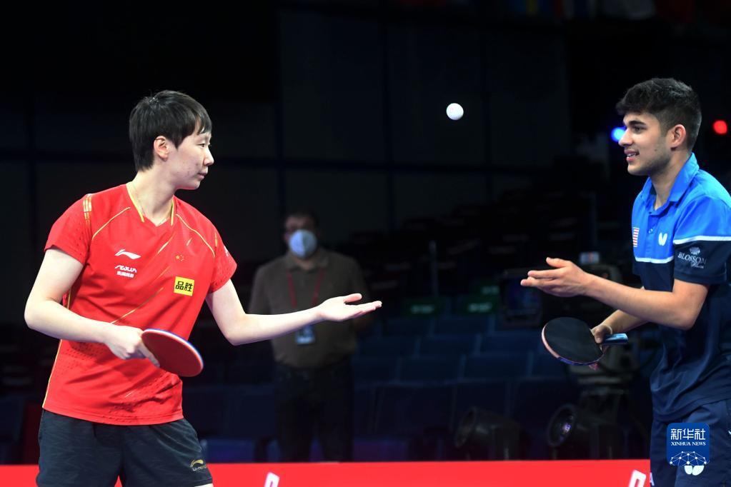 国际乒联21日晚宣布,中美选手将跨国配对出战2021年休斯敦世乒赛混双比赛,中国选手林高远搭档美国选手张安,美国选手卡纳克搭档中国选手王曼昱。22日,这两对中美混双组合进行合练。