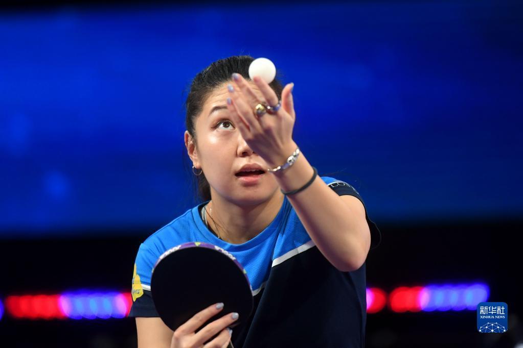 11月22日,世界乒乓球职业大联盟(WTT)理事会主席、中国乒协主席刘国梁(前中)指导训练。