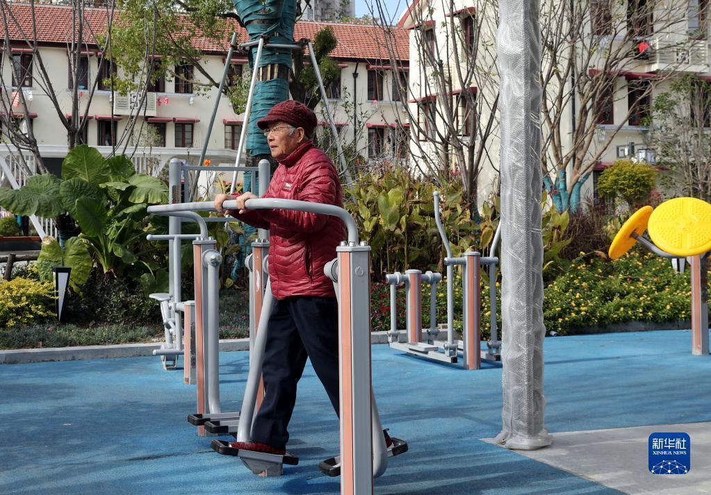 11月23日,曹杨一村居民在改造后新设的健身区域内锻炼。新华社记者 刘颖 摄